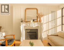 Pets Now Welcome! A Parisian-inspired jewel on False Creek. This one-of-a-kind waterfront residence has been reimagined as a bespoke pied-à-terre, blending classic European elegance with exceptional craftsmanship. Herringbone oak flooring, marble finishes throughout the foyer, kitchen, spa-like bathroom, and custom wainscoting evoke the timeless sophistication of a refined Parisian apartment. The thoughtfully designed interior features unlacquered brass Kallista fixtures, solid brass Buster & Punch switches/outlets, recessed designer lighting on dimmers, and Farrow & Ball paint tones known for depth and warmth. The kitchen is beautifully integrated with stone surfaces and built-in Fulgor Milano appliances, while a custom fireplace mantel anchors the living space with quiet drama. (id:58554)