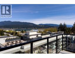 The outlook is the draw here. Burrard Inlet and the North Shore mountains open beyond the surrounding rooftops as you enter the living space. A wraparound balcony extends that same exposure outward. Newly built NE corner 2 bed, 2 bath at Anchor by Bold Properties, offering 772 sq ft. The layout is efficient and well judged, with true two-bedroom utility and no excess footprint. The open kitchen is finished with flat-panel cabinetry, quartz counters, gas cooking, and full-size appliances. The primary bedroom includes a double-vanity ensuite with walk-in shower. A second full bath is set off the foyer. One parking stall and one storage locker included. GST paid. Rooftop terrace, landscaped courtyard, gym, and lounge in the building. (id:58554)