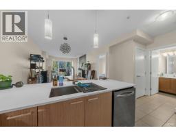 Modern North Shore living at The Drive by Onni. This well-appointed 1 bed, 1 bath home is quietly positioned on the north-facing side, offering a bright and peaceful outlook with lush greenery and mountain views. The efficient open layout features hardwood flooring and a contemporary kitchen with quartz counters, stainless steel appliances, gas cooktop, and breakfast bar. The spacious bedroom fits a king bed and includes a walk-in closet with built-ins. Spa-inspired bath with deep soaker tub. Steps to transit, groceries, cafes, and restaurants with easy access to Downtown. Well-managed building with gym, party room, bike storage & visitor parking. 1 parking included. (id:58554)