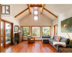 Tucked ever so quietly into the lush forest as though it was purposefully placed, this home feels like something discovered rather than simply built. With the quiet magic of a treehouse plus fine craftsmanship, this home is a truly unique opportunity to make Bowen your home. Beautiful woodwork flows throughout the space with rich timber details and reclaimed wood flooring giving the home both character and soul. The impressive loft-like ceiling, with an 18ยด elevated centre line, brings natural light into the living areas with rows of clerestory windows. Sunshine filters through the trees and summer sunsets with views of Mount Gardner provide a tranquil end to your day. The split-level floor plan provides nice privacy between the 2 bedrooms, each with fully renovated ensuites. The den on the lower floor offers flexibility for use as a 3rd bedroom, art space, or home office. This property offers privacy and tranquility, yet it is on the transit and school bus routes, and just a short drive into Snug Cove. (id:58554)