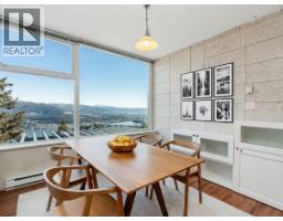 Panoramic inlet and mountain views from this sub-penthouse residence at Novo II. Very well laid out 2 Bed + Den with a defined dining area and an open den that works well as a home office or optional third bedroom. The space feels open and airy with highe ceilings, and beautiful views carried through the kitchen, living, and dining areas. Large balcony perfectly positioned to take in the view. 993 sq.ft. of functional interior living in SFU's quiet UniverCity community, steps to campus, transit, parks, and daily amenities. Building amenities include a gym and party room. 1 parking included. (id:58554)