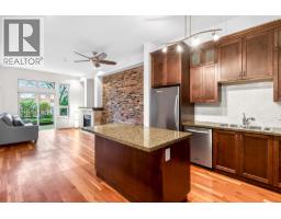 Character. Location. Value. This 1-bedroom ground-floor home at Paddlers Landing delivers all three. Set in a unique riverside community along the Fraser in Queensborough, the space impresses from the moment you walk in - over-height ceilings, reclaimed pine floors, and a dramatic brick feature wall create a look that's anything but ordinary. The well-equipped kitchen features KitchenAid stainless appliances, a gas cooktop, granite island, and a stylish backsplash. Cozy up by the electric fireplace or head out to the garden patio through the open living area. The bedroom includes a walk-through closet and cheater ensuite. You're minutes from the Port Royal Waterfront Walkway, Ryall Park, Queensborough Landing, and Costco. Pet-friendly, rental-friendly, and move-in read. (id:58554)