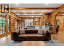 Step into this stunning custom-built chalet set on an impressive 3.29-acre property. Surrounded by towering cedar trees, this private 3,708 square ft residence offers both tranquility and space. Inside, you´ll appreciate the detailed custom woodwork, expansive windows that flood the home with natural light, and a chef-inspired kitchen featuring premium appliances, an HRV forced air system, and handcrafted wood countertops sourced directly from the land. Outside, the meticulously landscaped grounds are just as captivating, featuring a spacious deck, a cedar sauna, and a covered hot tub-perfect for relaxing or entertaining. The property also includes a fully updated barn with 2.5 bedrooms and a garage/workshop. Additional features such as garden beds, yoga dome and two storage sheds. (id:58554)