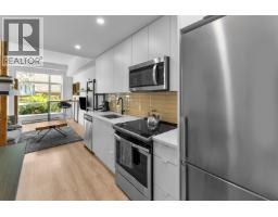 Welcome to Amira in the fantastic Uptown neighbourhood of New Westminster! This spacious studio offers a loft-inspired feel with a bright south-facing exposure that fills the home with natural light. Elegant finishes include gleaming quartz countertops, durable laminate flooring, and polished chrome fixtures. Soaring ceilings of nearly 10ยด create an airy, open atmosphere. Step out to your own private patio with a built-in garden-perfect for relaxing or entertaining. Amira is an exclusive collection of 41 thoughtfully designed homes and features an impressive rooftop patio. 1 parking stall and 1 locker included. This is the perfect starter home! (id:58554)