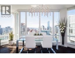 Welcome to Dolce at Symphony Place, Central Downtown location high floor with a great view! This stylish 2 bedroom suite boasts the best view of English Bay and beautiful city view. The home boasts luxury kitchen set up with stainless steel designer appliances. Well maintained home, very spacious yet cozy. Two washrooms with frost white porcelain sink and tub. Master bedroom is very spacious and fits a king size easily. The living room boasts floor-to-ceiling window for your viewing pleasure. Home also comes with a balcony with exhilarating sunset view. The building boasts full amenities including a gym, meeting room and a rooftop garden. Steps away from shops, financial district and the skytrain. Downtown living at its finest, Open house: April 11/Saturday 2-3PM. (id:58554)