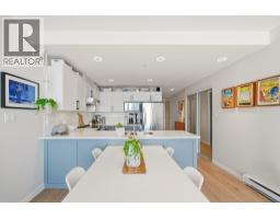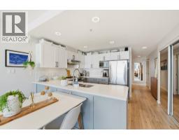 Gorgeous city and river views from this Modern 2 bed, 2 bath west facing corner unit with a spacious wrap round balcony. Beautifully updated kitchen features with new countertops, backsplash, lighting, opening into a bright, open-concept living living with new flooring throughout. Large windows fill the home with natural light. Spacious primary bedroom with walkthrough closet leading to ensuite. Well-maintained, pet & rental friendly concrete building with 1 parking. Conveniently located just steps to the waterfront boardwalk, SkyTrain, shops, cafés, Douglas College, and the River Market. (id:58554)