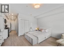 Welcome to this bright and modern third-floor Studio featuring stunning mountain views from your private balcony. The smart open-concept layout offers flexibility to create comfortable living, dining, and work areas. A spacious closet with charming barn-style doors provides excellent storage and can easily function as a home office. Enjoy quality finishes throughout, including stainless steel appliances, a gas cooktop with centre grill, built-in microwave, and sleek double-door fridge. Steps to Coquitlam River, Gates Park, trails, restaurants, the new Community Centre, and minutes to the West Coast Express. (id:58554)