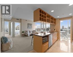 Perched on the 31st floor at Capitol Residences, this stunning 2 bed+den home showcases sweeping city views through expansive windows, filling the space with natural light. The open layout features a modern kitchen with built-in oven and gas range, flowing into a bright living area with balcony access. The primary bedroom offers its own balcony, walk-in closet, and a spa-like ensuite with double vanity, separate shower, and soaker tub. A bright den with windows is perfect for a home office, plus a separate flex space ideal for storage. Includes parking. Amenities include a gym and lounge. Steps to the energy of downtown-just a 5-min walk to Granville SkyTrain Station, St. Paul's Hospital, and the vibrant shops, dining, and nightlife of Davie Village. There is air conditioning in the unit and 24-hour concierge service. Floors 30 and below do not have air conditioning. Open House Sunday 11 AM to 1 PM. (id:58554)
