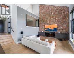This rarely available penthouse offers a unique blend of modern elegance and urban charm. Featuring 2 bedrooms plus a loft (serve as the master bedroom), this residence boasts 20 ft ceilings, a stunning reclaimed brick feature wall, and an open concept kitchen equipped with quartz countertops and s/s appliances. The spacious dining/living room area provides the perfect setting for entertaining guests. The loft opens up to a magnificent 500 sqf rooftop patio, where you can enjoy mesmerizing water, mountain, and city views. With two parking stalls (one with EV charging rough-in) and one storage locker included, convenience is at your fingertips. Located steps away from the riverfront promenade and the Q2Q ferry, this penthouse offers unparalleled access to the best of New Westminster living. (id:58554)