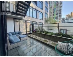 PRIVATE & SERENE 400 SF PATIO FACING COURTYARD! Stunning 2 bed + den, 2 bath corner 2nd floor garden suite in Olympic Village´s Proximity. Bright & airy with floor-to-ceiling windows & 9´ ceilings. Bedrooms are thoughtfully separated for privacy, plus a spacious den ideal for a home office or large pantry/in suite storage. Gourmet kitchen features Caesarstone countertops, full-size stainless steel appliances, gas range, breakfast bar seating & lots of counter space. Enjoy an incredible 393 square ft private patio/garden oasis surrounded by lush greenery w/BBQ gas hookup plus a sunny south-facing balcony. Includes 1 oversized parking stall & 1 double sized storage locker. Steps to Science World, False Creek, Main Street shops, dining, and transit. Pet & rental friendly, rooftop common patio & gym in the building. (id:58554)