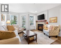 Don't let the age fool you! new exterior in 2008! Excellent strata! Meticulous and move-in ready, this spacious 1-bedroom home with a versatile flex area offers the perfect space for home office or oversized storage/pantry. Recent renovations incl. new flooring, fresh paint, & bathroom upgrades, along with a modernized kitchen featuring granite countertops and updated appliances. Functional layout offers no wasted space with bright living & dining area highlighted by a cozy gas fireplace overlooking tranquil, tree-lined greenbelt. Enjoy year-round use of the fully covered balcony. The full bathroom features a convenient cheater ensuite with walk-through closet. Ideally located close to shopping, PoCo Rec Centre, West Coast Express, Gates Park, and scenic walking trails. (id:58554)