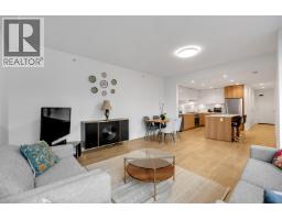 Massive, bright living and dining area in this spacious, almost brand-new 1-bedroom penthouse in North Vancouver. Features include laminate flooring throughout (including the bedroom), a modern kitchen with matching stone backsplash and countertops, magic corner cabinet pull-out, Panasonic built-in microwave, custom closet organizers, glass shower, and upgraded lighting. Bonus: a large den currently used as a second bedroom in this penthouse home at Creston by Pennyfarthing Homes. Open House: Sunday, April 12, 2-4 PM. (id:58554)