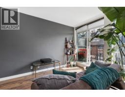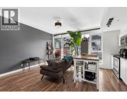 Perched on the upper floor of the boutique OnQue building, this bright end unit offers the kind of living that feels effortless from the moment you walk in. Soaring 8'8" ceilings lift the space, a south-facing patio invites the afternoon sun, & a moveable storage divider makes the floorplan entirely your own. Position your bedroom toward the front, the back, create two separate sleeping quarters, or carve out a proper home office. It's a rare thing, a home that genuinely adapts to your life rather than the other way around. The finishes are clean and contemporary with walnut laminate flooring, quartz countertops, glass backsplash, and stainless appliances. Being an end unit means more quiet, and a sense of space that's hard to find at this price point. Step outside your door and you're moments from the shared rooftop deck, where the downtown skyline and the North Shore mountains lay out before you. Below, Main & Broadway pulses with cafés, shops, and the new SkyTrain. Showings by appointment (id:58554)