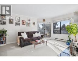 Welcome to August Grove Estates! This bright & airy TOP FLOOR corner 1 bed + den + 1 bath 725 sqft home offers desirable southwest exposure & an abundance of natural light throughout. Featuring TWO private balconies, this home is perfect for entertaining guests & enjoying the quiet treed outlook. The spacious layout features a large, bright den w vaulted ceilings - truly ideal for WFH, baby room or guest space. A cozy wood-burning fireplace adds warmth & character, while in-suite laundry, pantry & ample closet space provides everyday convenience. Enjoy the added benefits of a secure underground parking stall & storage locker. Ideally located within walking distance to Squint Lake Park and Burnaby Mountain Golf Course, with scenic trails and recreation right at your doorstep. Pets welcome! OPEN HOUSE SUNDAY APRIL 12TH 2-4PM (id:58554)