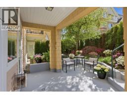 Quiet cul-de-sac location at the Compton at Windsor Woods, this bright 2-bedroom, 2-bath garden suite offers direct access to Highland Park and a large, sun-drenched gated patio, partially covered for year-round use, creating a peaceful and private setting. Engineered hardwood floors throughout, and the entire suite is complemented by large picture windows. The living room features a gas fireplace and overlooks the patio. The updated kitchen includes granite countertops and stainless steel appliances. The primary bedroom offers generous closet space and an ensuite, with bedrooms positioned on opposite sides for added separation. In-suite laundry, 1 parking, and 1 storage locker included. Windsor Woods is a well-established Tsawwassen community known for its water features, landscaped pathways, and convenient walkable access to shops, restaurants, and everyday amenities. (id:58554)