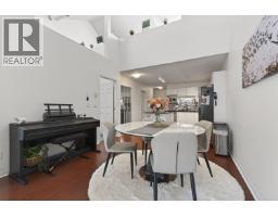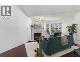 Welcome to Oxford Place! This unique top-floor 2-bed home features soaring vaulted ceilings, gleaming hardwood floors & a cozy gas fireplace. The updated kitchen impresses with white cabinetry, black granite counters, mosaic tile backsplash & stainless steel appliances including a gas range. The spacious second bedroom loft offers flexible living with vaulted ceilings & direct access to your private balcony overlooking a landscaped courtyard. In-suite stacked laundry, generous storage & closets throughout.Well maintained building with updated roof and balconies and EV charger installed by sellers. Steps to shops, transit, schools & the West Coast Express. A rare find - don't miss it! Open House Saturday/Sunday April 18-19 2-4PM. (id:58554)