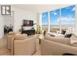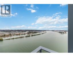 Pier West waterfront living with a rare blend of views, layout, and finish. This south/southwest-facing 2 bed + den, 2 bath home captures unobstructed Fraser River and city views through floor-to-ceiling windows, bringing in natural light all day. The open-concept plan offers excellent flow with wide plank flooring and a functional den for work or storage. Contemporary kitchen features Bosch appliances, gas cooktop, and clean stone surfaces. Air conditioning provides year-round comfort, while both bathrooms offer in-floor heating and a refined, spa-like feel. Over 10,000 square ft of amenities including concierge, gym, steam room, sauna, and lounge spaces. Prime waterfront location just steps to SkyTrain, shops, and the boardwalk. 1 parking and 1 locker included. (id:58554)