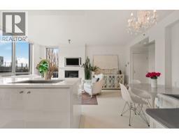 Experience refined coastal living at Alvar, in sought-after BEACH DISTRICT! This beautifully renovated 1 BED + DEN home offers an elegant, open-concept layout in one of the BEST BUILDINGS in the area. Expansive windows flood the space with natural light, complementing the airy 9-foot ceilings and the sophisticated white interior feels warm, welcoming & effortlessly timeless! Storage is abundant with a huge pantry and storage locker. The den/office with built-ins creates the perfect work-from-home retreat. Cozy fireplace anchors the living space, adding charm & comfort. A/C, 1 parking and pet-friendly (2 pets), it's a dream! Building amenities include a BBQ, Gym, Media Room, Hot Tub.Every detail has been carefully curated, resulting in a space that feels elevated, serene, and move-in ready. (id:58554)