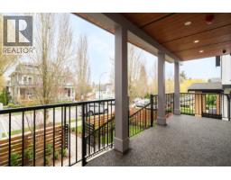 Welcome to Norquay Premiere, a limited collection of contemporary townhomes designed for East Van. This 4BR+4.5bath home incl. a lock-off suite - ideal as mortgage helper or multi-generational living. Enter through French doors on a spacious front porch, filling main living with natural light. Features incl. built-in media unit and modern kitchen with Fisher Paykel appliances, quartz counters & shaker cabinets. Upper levels offer 3 bedrooms, incl. primary with ensuite and top-floor balcony with city/mtn views. Equipped with heat pump for heat/AC, dedicated HWT & full-sz laundry. Smart security, secure bike storage & 1 parking included. Centrally located near parks, schools & Kingsway amenities; 9-min walk to 29th Ave SkyTrain & 20 mins to DT or YVR. Catchments: J. Norquay Elem. & Windermere Sec. (id:58554)
