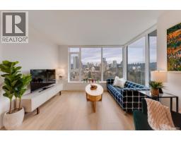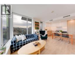 Welcome to this northeast-facing corner home at SOCO by reputable developer Anthem Properties. Rarely available, this proper 3-bedroom + den home offers over 1,000 sqft of functional living space, with spacious bedrooms and a fully enclosed den with door, ideal for a home office. Open mountain and city views, plus an extra-wide balcony. Features include full-size appliances, side-by-side washer/dryer, efficient heat pump heating/cooling, and gas/hot water included. Private entry keeps kitchen and living area out of direct view. Enjoy 43,000+ sqft of amenities including gym, indoor basketball court, party room, and outdoor BBQ. Includes parking, storage, and quick access to SkyTrain, shopping, dining, and highways. OPEN HOUSE: April 19th, Sun 2-4PM. (id:58554)