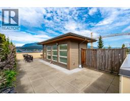 Three-level townhouse at Bayview Heights featuring an impressive 475 square ft rooftop patio w/mountains & Burrard Inlet views. This outdoor space is a true extension of your living area, complete with a gas outlet for a future outdoor kitchen. Open concept main flr offers a bright living and dining area, with the kitchen at the center, showcasing a large island, s/s appliances, gas stove, and ample white cabinetry. Two piece bath & laundry are also conveniently located on the main. Up features three bdrms and two full baths. The south-facing primary bedroom overlooks St. Andrews and includes a walk-in closet and ensuite w/shower. Tandem garage with additional storage. Boutique 15-unit complex close to Rocky Point Park, SkyTrain, Westcoast, shops, and more! First showing Thurs Apr 16 5-6 open by appt. (id:58554)