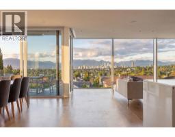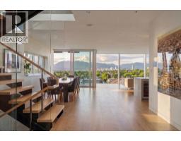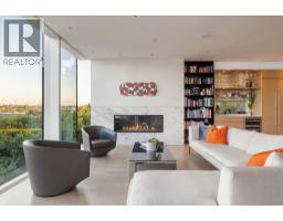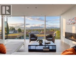 An icon of Vancouver architecture perched above Arbutus Ridge. Designed by Juli Hodgson with architecture by Sean Best, this concrete-and-glass residence opens to a vista that stops you mid-sentence - downtown, English Bay, and the North Shore mountains framed in floor-to-ceiling Schüco glass. Subtle from the street. Monumental in scale. Deeply calm in tone. Wide-plank Dinesen white oak grounds every step. Marble wraps the fireplaces, kitchen, and a primary ensuite where your soaker tub gazes at snow capped mountains. The main floor lives beautifully with a chef's kitchen with Gaggenau, Miele, and Sub-Zero anchored by a full marble wall. The lower level opens onto a private outdoor world - heated lap pool, hot tub, fire pit terrace, Japanese garden, and poolside gym. 500-bottle wine cellar, five ensuite bedrooms, home office, and a family room that flows to the courtyard. Radiant heat, A/C, EV charging, automated everything. One of the city's most remarkable homes - come experience it. (id:58554)