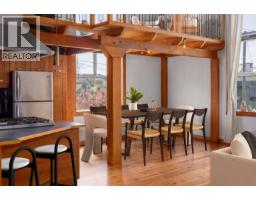 Rare in both form and function, this 2 bedroom live/work loft space at The Workshop is a post-industrial style gem. Over 1500 square ft of bright open-plan living space is accentuated by soaring 17 ft ceilings, gorgeous millwork and expansive windows with beautiful outlooks of tree-lined streets and cityscape. Inside, natural fir posts & beams and wide-plank custom flooring imbue the space with warmth, as does the welcoming gas fireplace. Other standout features include glass flooring in the 2nd floor office nook, a gourmet kitchen with central island and wrought iron railings. Heated slate flooring in the main bathroom, solar-reduction windows, double-insulated walls and large ceiling fans offer additional comfort. Ideally situated on the quiet SW corner of this well maintained concrete & steel building (with new roof), enjoy living in vibrant and dynamic Strathcona in one of Vancouver´s few warehouse conversions. Find Commercial Drive and downtown close at hand. 1 secure parking. Great tenants. Digitally staged. (id:58554)