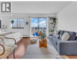 Excellent value for this top-floor studio nestled in central Kitsilano. This bright, renovated home offers a functional layout featuring a sleeping nook and ample storage. Add a sliding partition for seclusion or maintain the open flow to appreciate mountain vistas from your windows. This space fits a dining set or offers casual seating at the kitchen´s breakfast bar. Relax on the expansive balcony overlooking vibrant spring blossoms along this lush, quiet street. The suite remains breezy in summer, includes fiber-optic wiring, one parking stall, a massive locker, and access to secure bike storage. Steps from Kits Beach, Arbutus Greenway, local eateries, the future Skytrain, and West 4th shopping. This prime location is truly unbeatable! Pets welcome! (id:58554)