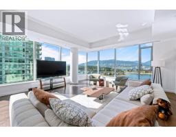 Three Harbour Green. Vancouver's Premier waterfront property. Seldom available to market, prime NW corner 2500 sq. ft. 2 bdrm + den of the ultimate in luxury living. Breathtaking panoramic views of Coal Harbour, Stanley Park and Northshore mountains. Fabulous open floor plan showcasing chef's Snaidero kitchen from Italy with the finest appliances and contemporary fittings. 10 ft. ceilings, upgraded hardwood flooring, stunning oversized patio for all year enjoyment. Building features a stunning lobby, 24 hr. concierge, virtual golf, squash, indoor pool. Bonus private 2 car garage & storage. (id:58554)