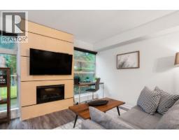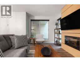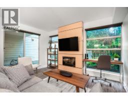 QUIET SIDE OF BUILDING - 2 beds, 2 full bath, 2 parking stalls and over 1,000 sqft of interior space! Excellent location, with walking access to Edgemont Village, hiking trails, and transit! Live in nature - the home boasts a private outlook with forest views. The open plan home features a large kitchen with stainless steel appliances, granite countertops and a centre island which connects to the dining and living room with floor to ceiling windows and a feature wall with TV and fireplace plus access to the large wrap around patio. Two spacious bedrooms, including the primary with a walk-in-closet and a large ensuite with double vanity. One-level access, 2 parking stalls, and a huge storage locker plus pets welcome! Nothing to do but move in and enjoy! Furniture may be included in sale. (id:58554)
