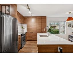 Welcome to District Crossing. This spacious corner NW-facing home offers a rare perk of only sharing the back kitchen wall with the neighbour and is positioned on the quiet side of the building. Thoughtfully designed, the open living area is complemented by modern, refined finishings and a built-in office nook-ideal for working from home. Enjoy year-round use of the covered balcony, plus the convenience of in-suite storage/flex space and an additional locker. Centrally located within walking distance to shops, restaurants, and recreation, with Grouse Mountain only 15 minutes away and the SeaBus a 10-minute bike ride. A well-balanced blend of style, comfort, and location. Dogs and Cats allowed - no size or weight restriction. (id:58554)