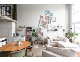 Corner loft at the Watershed in Mount Pleasant! This striking 4th floor north-facing home features soaring 17-foot ceilings, expansive floor-to-ceiling windows, and polished concrete floors that create an open, light-filled space. The bedroom is on the 2nd loft level with a window overlooking the quiet interior courtyard. Enjoy the perfect balance of style and comfort, with a peek-a-boo view of the mountains and city skyline from the living area. Enter the loft through an open-air corridor which offers outdoor space for your barbecue and potted plants. Watershed is a coveted concrete loft building featuring a beautiful mature garden courtyard and a common rooftop deck with fantastic views. Complete with underground parking, these unique concrete lofts rarely come available. (id:58554)