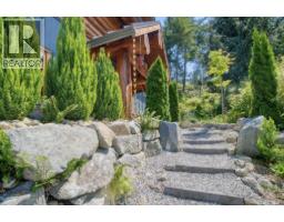 A rare blend of luxury, craftsmanship, & self-sufficient coastal living in this stunning West Coast log home by Pioneer Log Homes. Perched above Sechelt Inlet you'll literally watch the eagles sweeping mountain views, enjoy paddleboarding, biking, and evening sunsets. Want to rely less on the grid? Highly efficient solar panels, wood stove, steel roof, garden space & impressive hardscaping all create a retreat that can offer real self sufficiency. Inside, handcrafted logs, soaring ceilings, wraparound windows, & custom carved animals add warmth and character to this stunning space The Great Room invites cozy nights by the fire & the carriage house with garage & guest suite give flexibility plus plenty of storage for your adventure gear. A beautiful home built to last. Book your tour today. (id:58554)