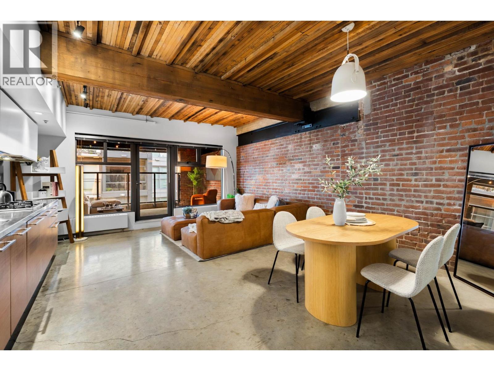 In the heart of False Creek, The Exchange stands as a quiet reminder of Vancouver´s past, thoughtfully reimagined for modern living. Once the city´s telephone exchange in 1911, this heritage landmark offers a refined collection of boutique residences where history is felt in every detail. Inside, a warm industrial palette unfolds exposed brick, polished concrete, & reclaimed Douglas fir beams rising beneath 9´2 ceilings, creating both scale & intimacy. The kitchen, finished in Italian Dada cabinetry with premium appliances, blends seamlessly into the living space, while a spa-inspired bath offers a frameless glass shower & separate tub. Outdoors, a 143 SF terrace extends the home into fresh air. 1 parking & 1 storage included. Above, a rooftop terrace with garden plots, BBQ & lounge (id:58554)