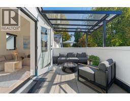 Ideally located in the heart of the West Side, this refined residence at Oeste 33 blends timeless Spanish Revival design with modern luxury. Set on the quiet side of an exclusive six-home enclave, the coach house features a 170 sq. ft. south-facing partially covered patio, 10.5' vaulted ceilings, radiant in-floor heating, air conditioning, and a gourmet kitchen. Enjoy elegant herringbone white oak floors, spa-inspired bathrooms, custom built-ins, and a versatile den ideal for nursery, child's bedroom, or prime home office. With a private front entrance, abundant natural light, and a serene tree-lined outlook, this exceptional property is steps from Quilchena Park, cafés, shops, and premier private clubs-perfect as a sophisticated primary residence or elegant pied-à-terre. Book your private viewing today! (id:58554)