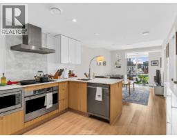 Bright and beautifully designed 1 bed + den + solarium/office in a prime Olympic Village location! This thoughtfully laid-out home features engineered hardwood floors and a sleek contemporary kitchen with stainless steel appliances with a modern designer hood fan. Polished cabinetry pairs glossy uppers with warm-toned lowers, while the peninsula island with has seating for 2, a built-in wine rack, and added storage makes it perfect for entertaining. Enjoy a spacious 5-piece bathroom, large laundry/den, and a versatile solarium ideal for a home office. Fantastic building amenities include a party room and rooftop BBQ plus a gym!ย A stylish, functional home in an unbeatable setting! (id:58554)