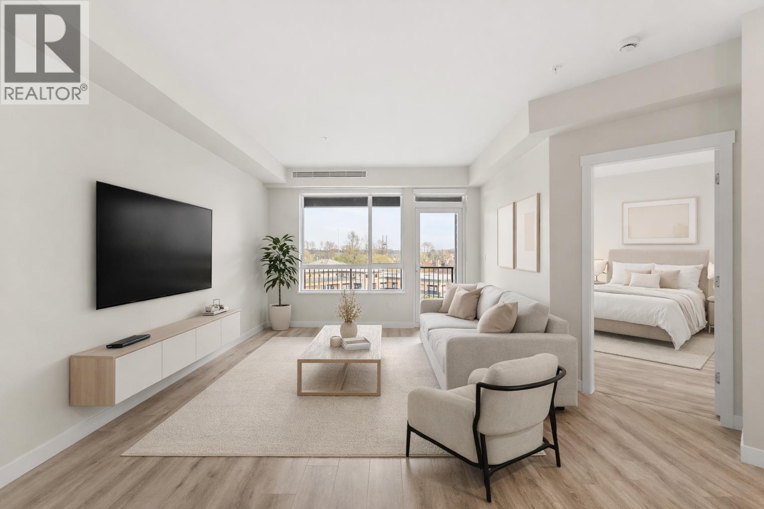 Brand new, bright & spacious 1 bed + large den home. The den with French doors is large enough for a 2nd bedroom or office. Open-concept kitchen offers 2-tone cabinetry, stainless steel appliances, gas range & quartz counters. Covered balcony with gas hookup for year-round BBQs & an unobstructed southeast view. Incl. 1 secure parking stall with EV charger & storage locker. Located in Hamilton Village with both established & brand new shops/services right downstairs, close to Walmart Supercentre & the new Costco. Building amenities include a gym, amenity space & plenty of visitor parking. Elementary school & community centre across the street, plus quick bus access to 22nd Street SkyTrain. Some images virtually staged. (id:58554)