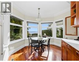 IMPRESSIVE OCEAN views highlight this well-maintained residence, positioned on a serene street offering sunrises over Mt. Baker and sunsets toward Vancouver Island. Inside, pristine hardwood floors, crown molding, vaulted ceilings, and custom millwork provide architectural elegance. The main floor presents an elegant office with fireplace, open-concept living area with gourmet kitchen boasting a Viking gas range/oven, electric oven, and extended central island. Double French doors reveal a sun-filled deck for outdoor entertaining. Upstairs, the luxurious primary suite delivers SE and SW Ocean views, a massive walk-in closet, and 5-piece ensuite. The lower level features a rec room, bedroom, steam shower, gym, & huge storage room. Minutes to Dundarave Village, the Seawall, and Beach House. (id:58554)