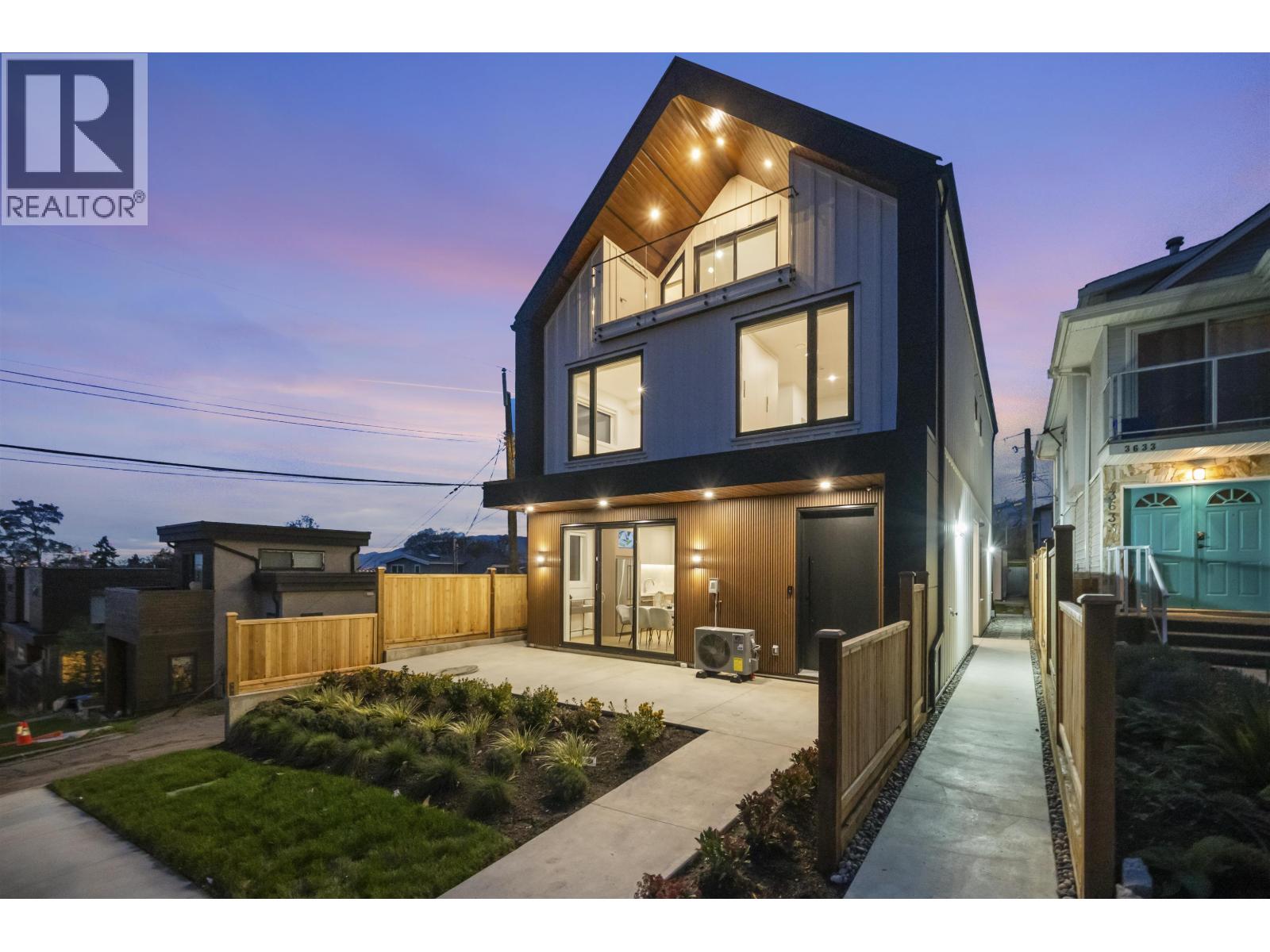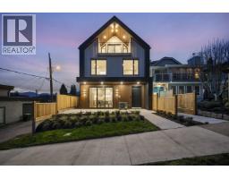 Brand new, sleek and stylish FRONT duplex perched on a corner lot in highly sought-after Hastings Sunrise. Thoughtfully designed with a flowing floor plan, this home offers an open main level with designer finishes, high ceilings, and abundant natural light. The modern kitchen features custom cabinetry, premium appliances, and functional workspace - perfect for everyday living and entertaining. Upstairs offers well-appointed bedrooms including a beautiful primary suite with spectacular city + mountain views. Quality craftsmanship, timeless material choices, and private outdoor spaces complete this impressive build. Located in one of East Vancouver's favourite pockets - walkable, family-friendly, close to shops, parks, schools, transit, breweries, and easy access to DT, North Shore, and HWY (id:58554)