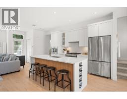 Rocklin on the Creek by Woodbridge Homes. IDEAL LOCATION in the complex! Gorgeous END UNIT Townhome incredibly bright & spacious, backing onto serene greenbelt offering privacy & peaceful natural outlook. Featuring custom millwork accent wall with fireplace & TV wall with hidden wiring, 9ft ceilings, stunning windows & wide plank flooring. Gorgeous chef-inspired kitchen with expansive island, quartz counters & S/S appliances. Upper level offers 3 BDRMS 2 BTHRMS incl vaulted ceilings in primary suite, plus a walk-in closet with Cali-Closets & 4-piece ensuite with dual sinks & frameless glass shower-stunning. BONUS Double side-by-side garage provides exceptional storage plus a back door access to a private yard. Close to Victoria Park, Leigh Elementary, Leigh Park, trails & shopping. 2 Pets OK! (id:58554)