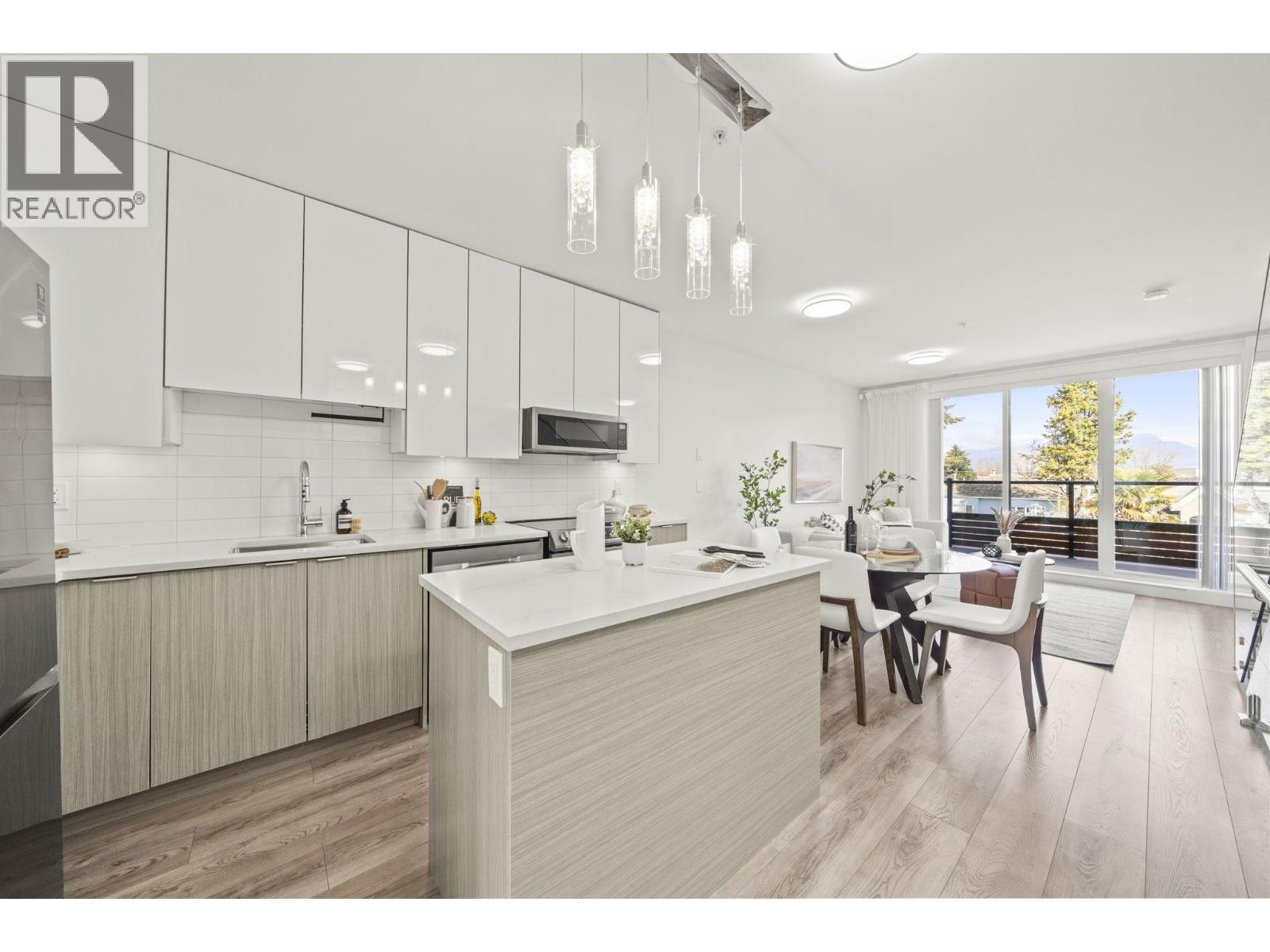 Modern, sun-filled 3-bedroom townhouse offering over 1,200 sqft of thoughtfully designed living space plus an impressive 300 sqft of outdoor space across three decks. Recently refreshed with new paint, this home features a heat pump for year-round comfort with A/C, an open-concept kitchen with a pantry closet, flowing seamlessly into a dedicated dining area and a bright, airy living room that opens onto a BBQ balcony. All 3 bedrooms are generously sized, while the upper level showcases two expansive rooftop decks-one south-facing for all-day sun and the other northwest-facing with stunning mountain views. Includes one EV-ready parking stall, storage on the deck, plus two exterior storage areas. Ideally situated close to transit, amenities and schools for the ultimate convenience. (id:58554)