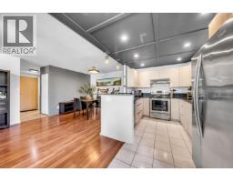 Spacious 1-bedroom, 1.5-bathroom home offering an excellent layout and abundant storage throughout. Enjoy a large wraparound balcony with peaceful south-facing views of the greenbelt-perfect for relaxing or entertaining. Primary bedroom includes access to a versatile den-ideal for walk-in closet, office, or additional storage. The updated kitchen features sleek black quartz countertops, stainless steel appliances, and the added bonus of a window above the sink, bringing in natural light. In-suite laundry and powder room offer added convenience for guests. Well-located just steps to Highgate Village shopping, restaurants, and amenities, with direct access to the Highland Park Line Trail. Includes 1 parking stall and storage locker (id:58554)