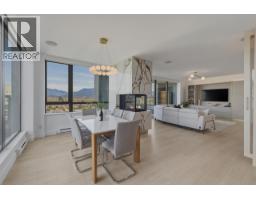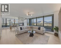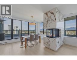 This exceptional Bosa-built penthouse offers luxury living in the heart of Brentwood. Expansive wall-to-wall windows drench the home in natural light and showcase unobstructed views of the downtown skyline, North Shore mountains, and vibrant sunsets. Spanning over 1600 SF, this rare corner residence is complemented by over 500 SF of outdoor space across three generous patios, creating seamless indoor-outdoor living. Fully renovated with custom finishes featuring a built-in bar, statement three-way fireplace, automated blinds, smart home features, ample storage and more. Thoughtfully separated bedrooms, plus a flexible office converted into a third bedroom. Just steps to The Amazing Brentwood, transit, and everyday conveniences. Side-by-side parking stalls located next to the elevator. (id:58554)