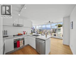 Welcome to your residence in the SKY! This NW corner suite with stunning panoramic views, the best of central city living. From your living room, bedrooms, & private balcony, take in sweeping vistas of the mountains & skyline. Functional layout - 2bed on opposite sides, 2bath, & walnut hw flooring throughout. True Chef´s kitchen boasts a gas stove, integrated Miele & Blomberg appl, lacquered European cabinets, a custom art glass backsplash, & Corian countertops-all within a bright open-concept design. Primary bedroom is filled with natural light & includes a serene ensuite with a cozy soaker tub. Additional comforts incl insuite laundry, storage locker, parking avail next door at Easy Park. Concrete building: playground, gym, outdoor BBQ, garden, & rooftop terrace. Move-in ready HOME! (id:58554)