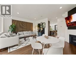 This beautifully renovated 4-bedroom townhouse offers over 2,000 square ft of thoughtfully designed living space for the whole family. The above-ground lower level features a spacious 4th bedroom or rec room with walk-out access to a private fenced yard with artificial turf. The main floor showcases a designer living room with custom built-ins, gas fireplace, and deck access with gas BBQ hookup overlooking a peaceful greenbelt. A standout is the stunning designer dining room with a full bar, stone countertop, and built-in coffee station with cabinetry. Additional upgrades include A/C, heat pump, engineered hardwood throughout, fresh paint, designer wall panels, new appliances, custom built-ins for added storage, and closet organizers in every room. The generous primary bedroom fits king-sized furniture and offers built-in window cabinetry, a walk-in closet, and a spa-inspired ensuite. Bonus: upper-floor laundry, powder room, pantry, single garage, plus covered 2nd parking. (id:58554)