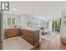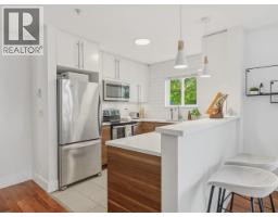 beautifully renovated 2 bed - 2 bath corner unit in the heart of Lower Lonsdale. Offering over 900 sq/ft of thoughtfully designed interior space, this home perfectly blends comfort, style & functionality. Step inside to discover a bright, south-facing layout flooded with natural light. The fully renovated interior showcases meticulous attention to detail, creating a warm, inviting atmosphere with timeless character. The chef-inspired kitchen features abundant windows. The spacious living area has a cozy gas fireplace, while the spa-like primary bathroom provides a serene retreat. Standout feature is an expansive covered patio, private yard and garden space, perfect for those summer BBQs. Don't miss your chance to secure this exceptional residence. (id:58554)