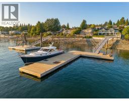 West Coast waterfront living at its finest. This exceptional low-bank property features a stunning 8-year-old custom home with impeccable craftsmanship throughout. Enjoy seamless indoor-outdoor living with an oceanfront pool, retractable deck cover, and a recently rebuilt private dock suitable for large yachts and floatplanes. The open-concept main floor is ideal for entertaining, showcasing breathtaking views and a chef-inspired kitchen. The spacious primary retreat offers a walk-in closet and spa-like ensuite. Downstairs includes a large rec room, sauna, and a two-bedroom in-law suite. Complete with geothermal heating/cooling, rainwater irrigation cistern, heated driveway, and elevator. A rare and spectacular waterfront offering that must be seen to be fully appreciated. (id:58554)