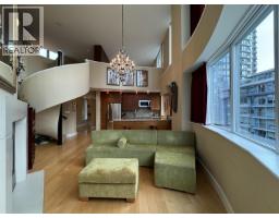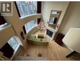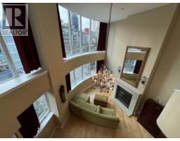 One-of-a-kind 2-level penthouse with 2 bedrooms, office, and den. This bright home features striking architecture with windows throughout and a dramatic living room with 15 ft ceilings, fireplace, remote-controlled curtains, and double-height windows. The open kitchen flows into the main living space, ideal for entertaining. A spiral staircase leads to a loft-style reading area and den. The airy primary suite offers exceptional closet space and a hidden entry to a spa-inspired 5-piece ensuite with custom millwork. Enjoy a sunny west-facing 300 sqft patio with zen stone garden. Bonus air conditioning. Building amenities include concierge, indoor pool, sauna, steam room, and gym. Includes parking. (id:58554)