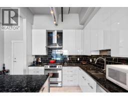 Welcome to a New York style loft in New West! Located in the Uptown neighborhood, you can walk to so many stores and restaurants from this central location. Featuring over 10 foot high ceilings, large windows, concrete beams, and skylights, this converted 2 bedroom loft has been recently renovated. The centre island kitchen with gas stove and a huge granite island with waterfall edges was planned by a professional Chef. Check out the custom real brick wall! 1 parking spot is included and there are many extra spots available for rent. Homes like this one are rarely on the market. The Strata here is well managed, and there is a great variety of shops on the ground floor of the building. (id:58554)