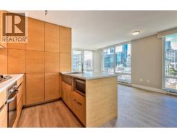 Welcome to this bright 2-bedroom + den, 2-bathroom corner home at Vita, a well-maintained concrete building in the heart of Downtown Vancouver. Located on the 10th floor, this south-facing unit offers approx. 885 square ft of thoughtfully designed living space with abundant natural light and a functional open-concept layout. The well-separated bedrooms provide privacy, while the spacious den is ideal for a home office or extra storage. The modern kitchen features high-end stainless steel appliances, gas cooktop, sleek cabinetry, and premium countertops, flowing seamlessly into the living and dining areas and out to a private corner patio. Additional features include hardwood flooring, in-suite laundry, 1 secured parking stall, and 1 storage locker. Unfurnished, move in ready! (id:58554)